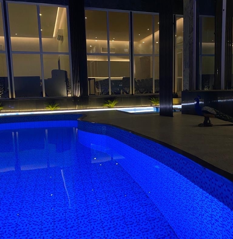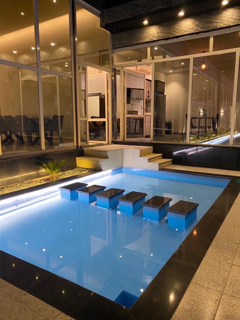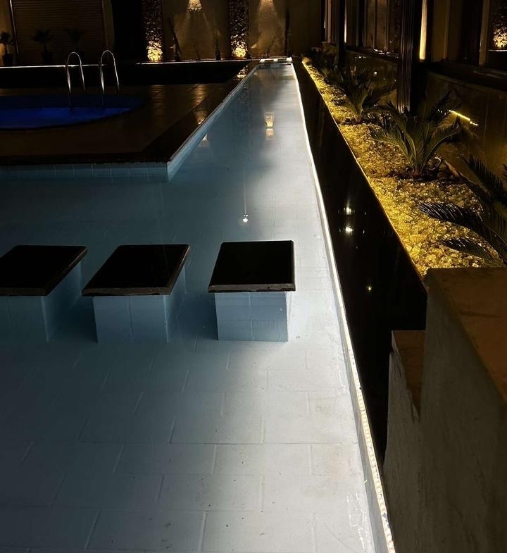 -مسبح خارجي مجهز بفلاتر جديدة عليها ضمان من شركة بن طالب .