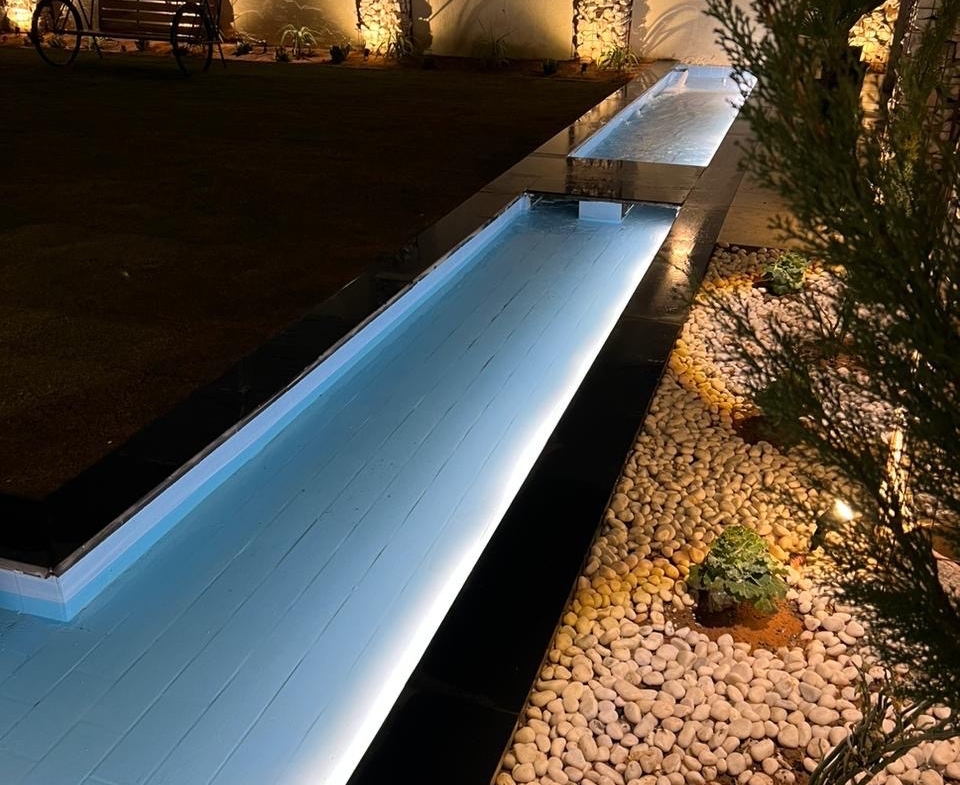 المبنى بالكامل واجهته زجاج بالاضافة الى الحديقة والممرات المائية واشجار الزينه