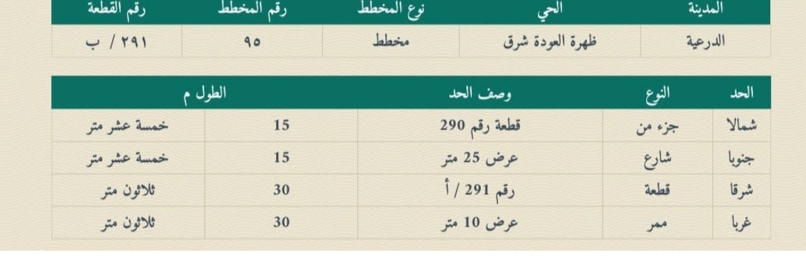 | وصف موقع العقار | حي ظهرة العودة بمدينة الدرعية . |