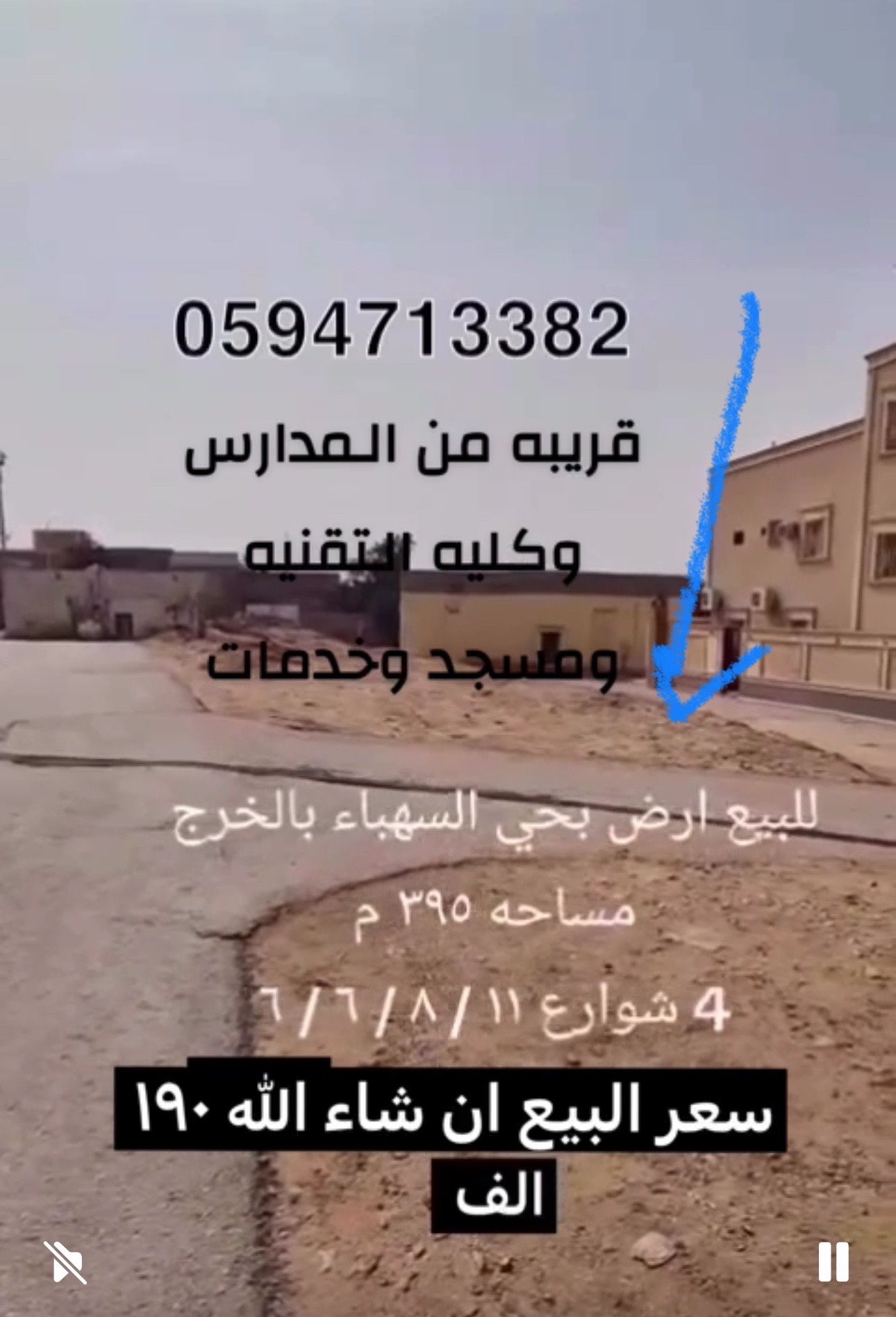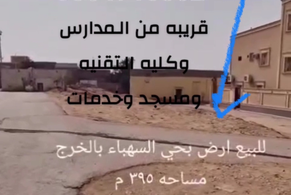 للبيع ارض سكنيه في الخرج حي السهباء مساحتها ٣٩٦م على اربع شوارع ٨/٦/٦/١١