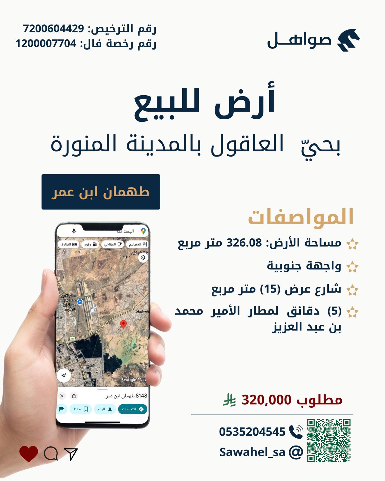 أرض للبيع في حي العاقول بمنطقة المدينة المنورة
