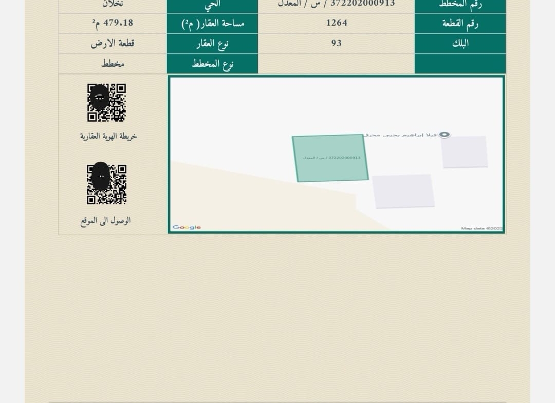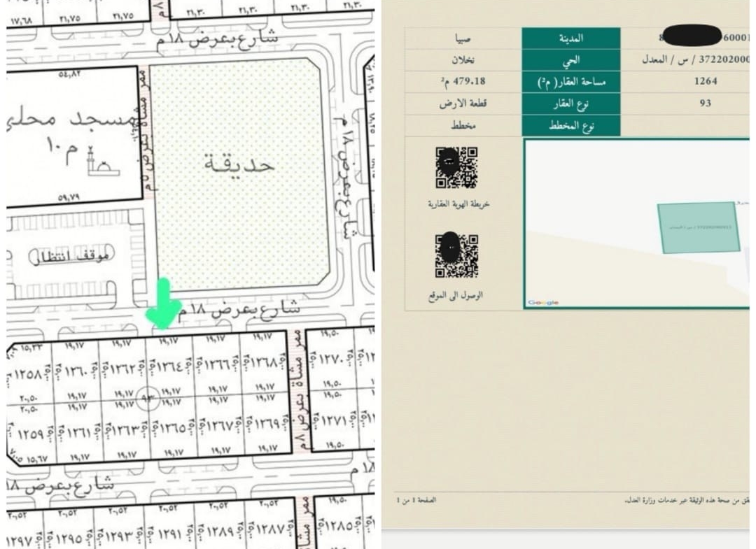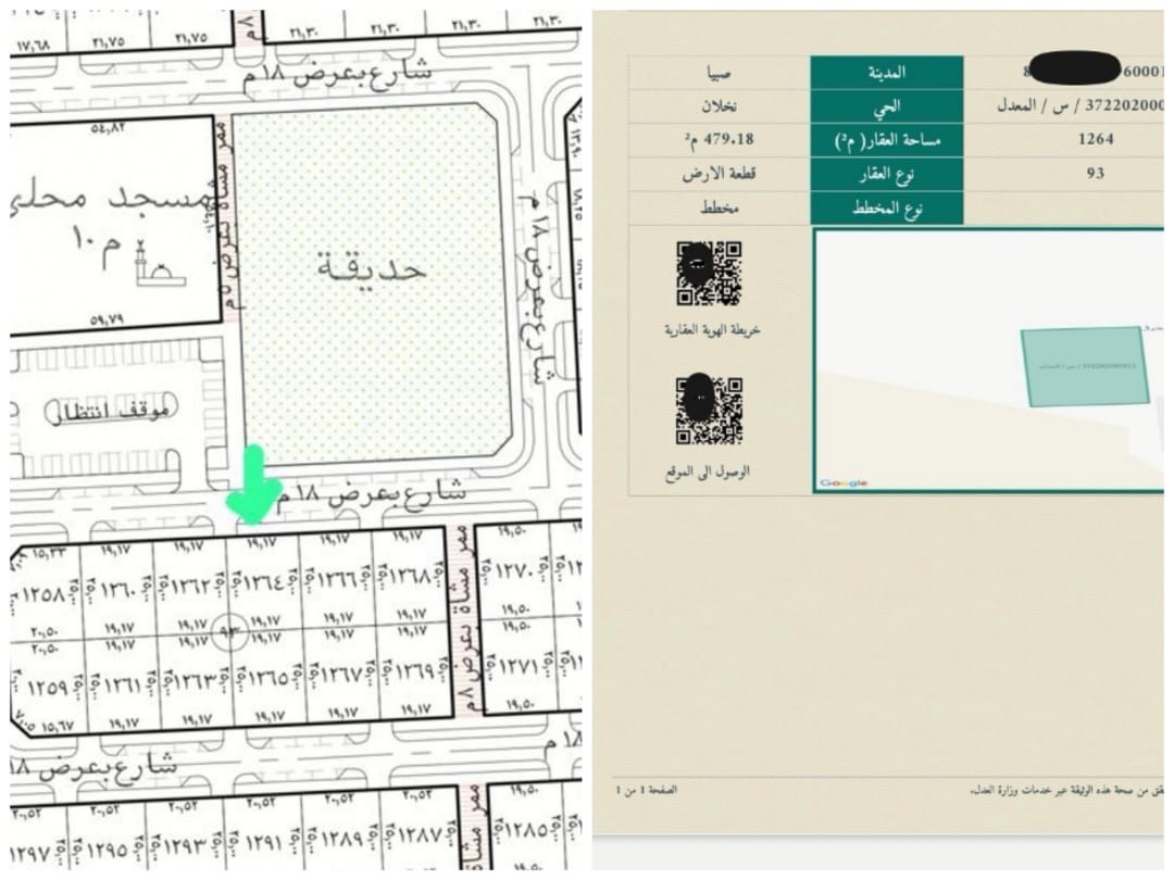 للبيع ارض في صبياء مخطط نخلان بصبيا مساحه 479.18 متر شارع 18م٢ واجهة جنوبيه