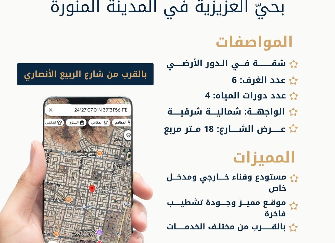 شقة للإيجار بحي العزيزية بالمدينة المنورة.