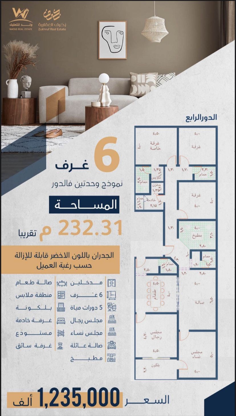 اسم المعلن : | مؤسسة زخرف العقارية |