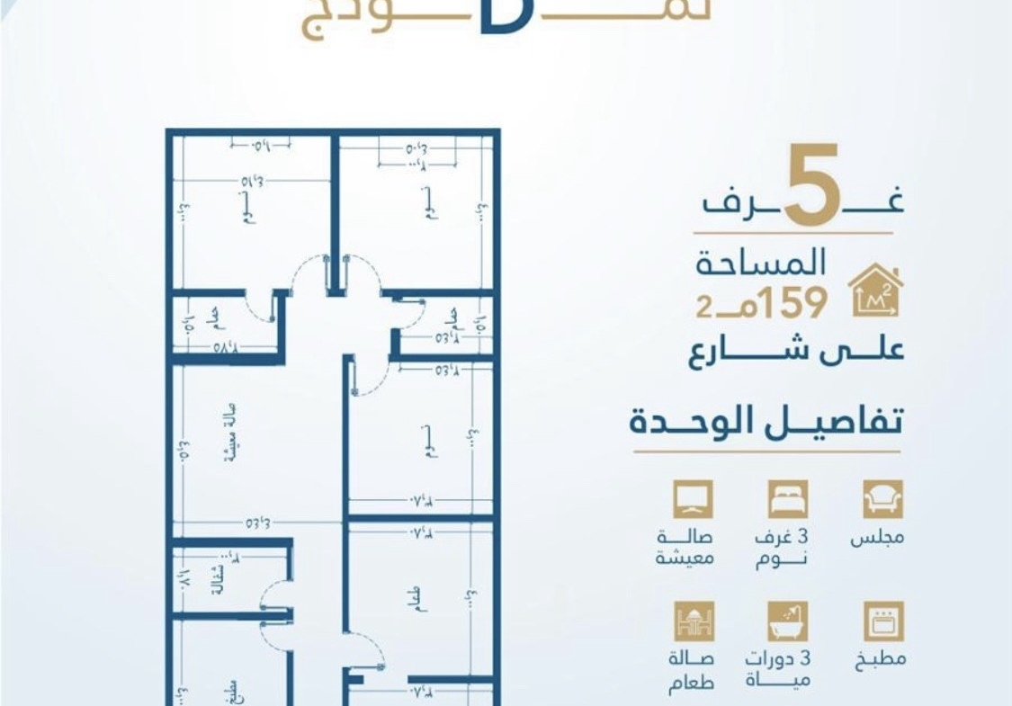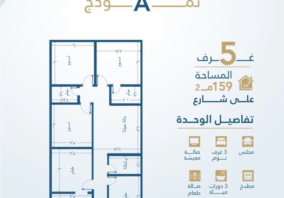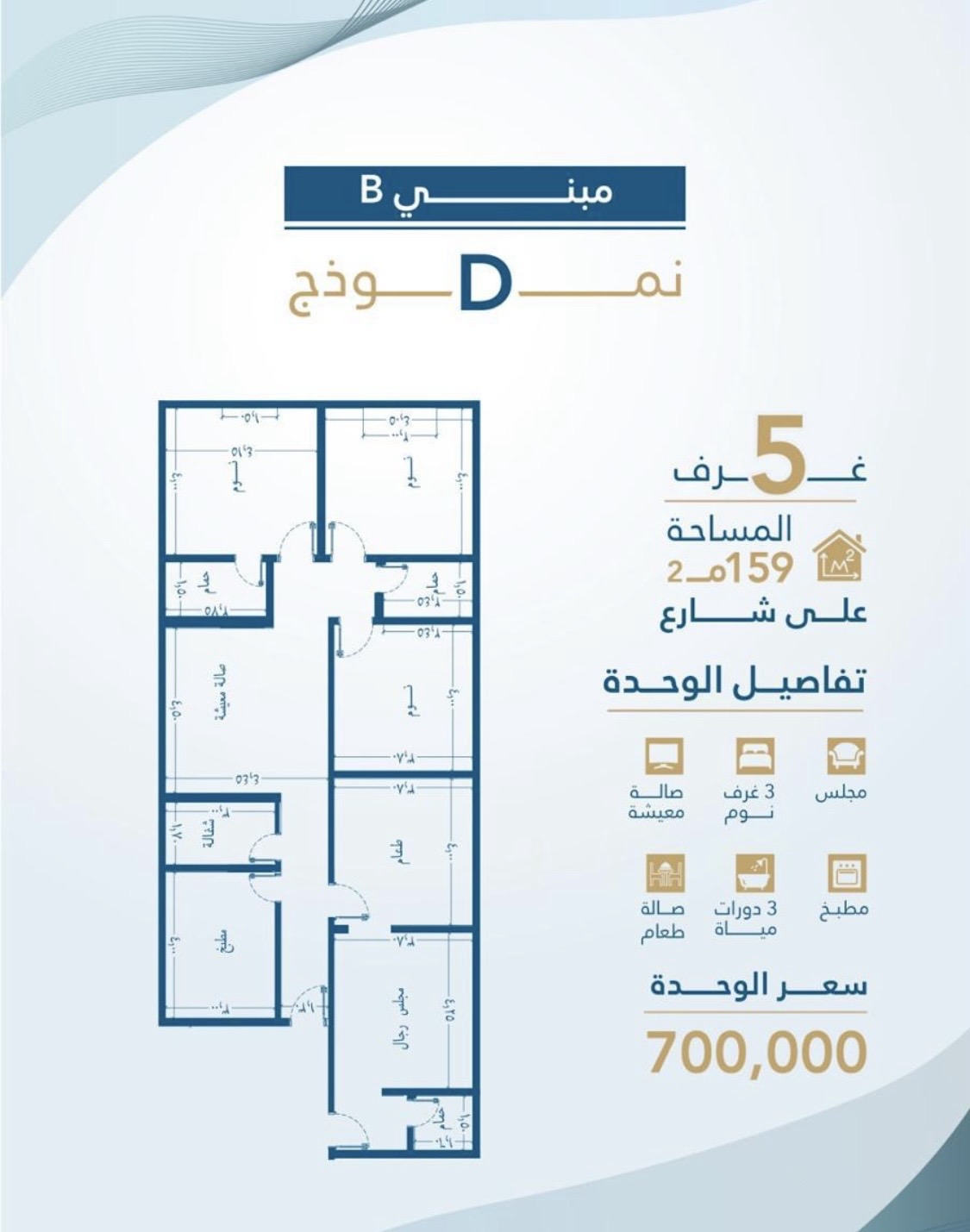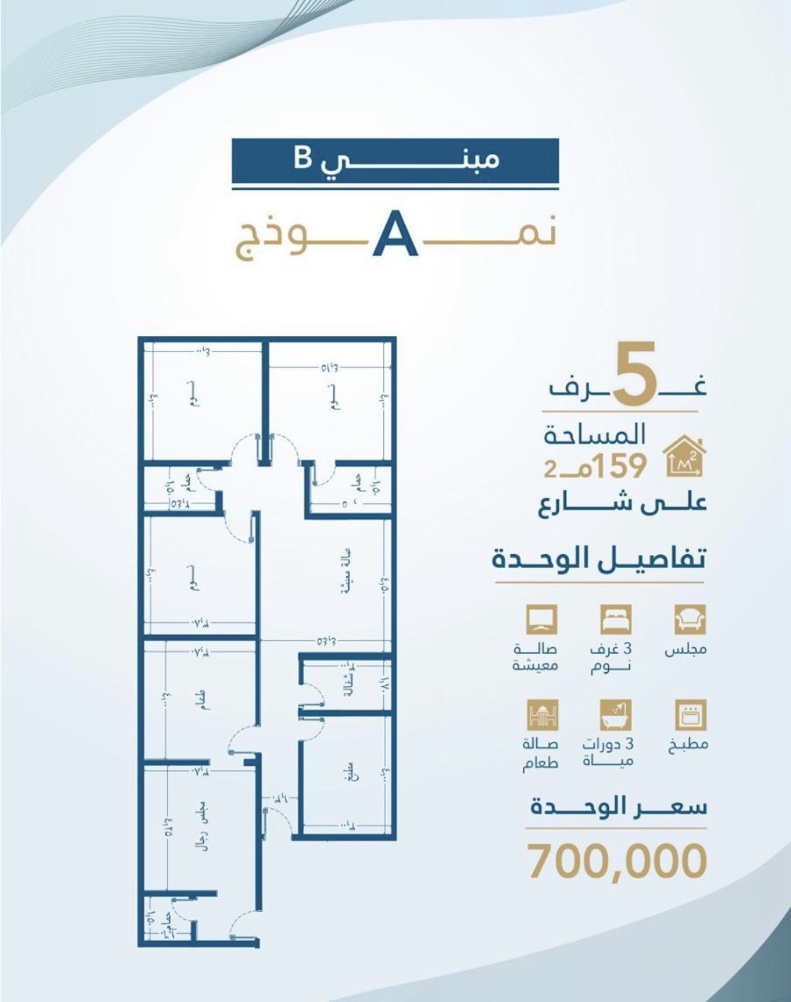 ٥ غرف على الشارع مساحة ١٥٩ م بسعر ٧٠٠ الف
