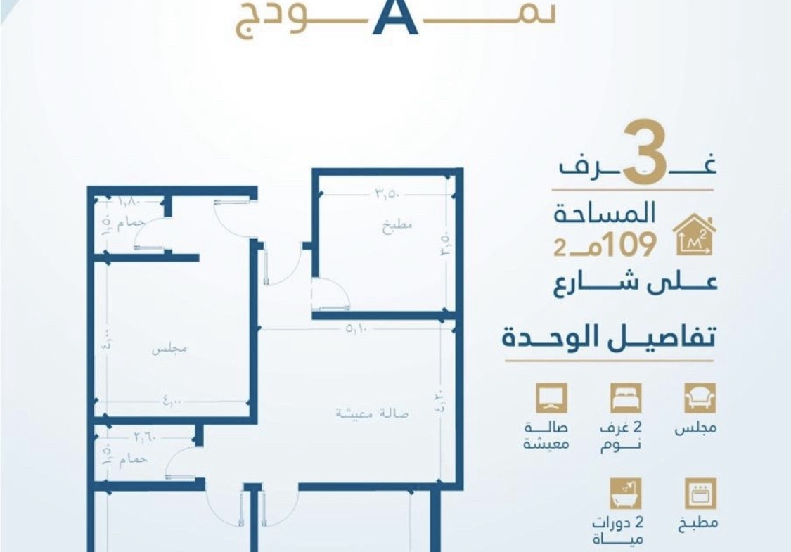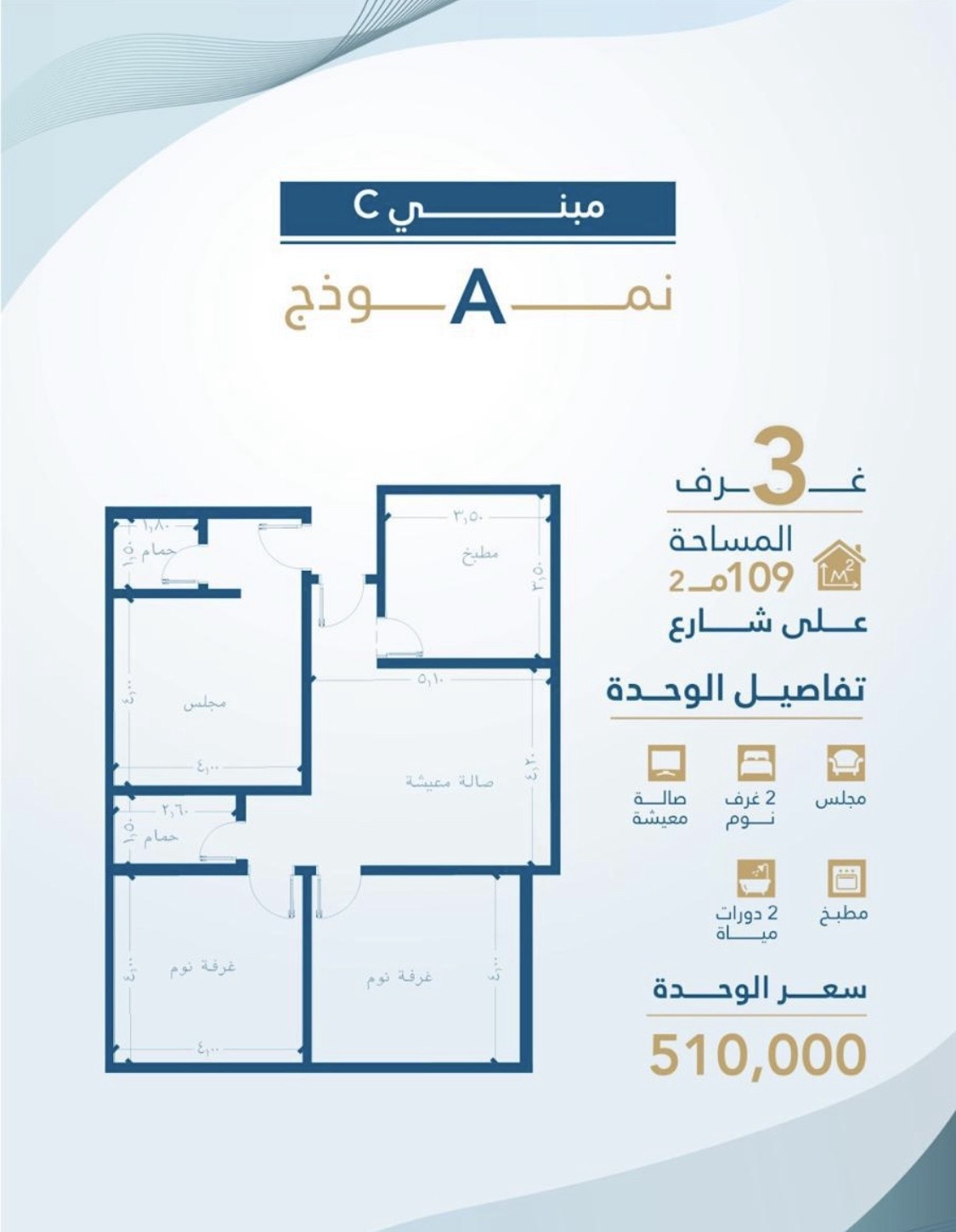 ٣ غرف على الشارع مساحة ١٠٩ م بسعر ٥١٠ الف