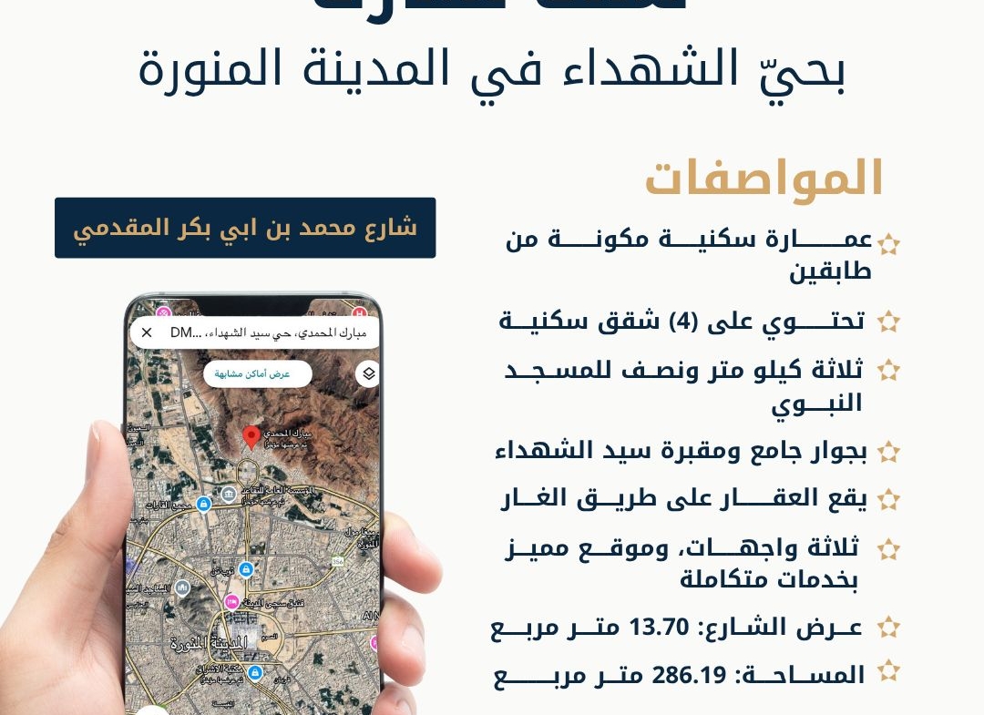 عمارة للبيع بحيّ الشهداء بالمدينة المنورة.