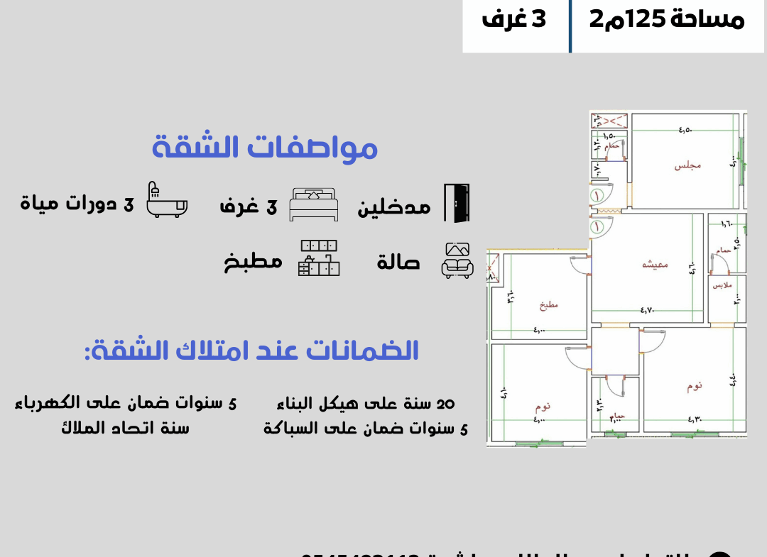 خزان علوي وسفلي مستقل لكل شقه عداد كهرباء مستقل لكل شقه