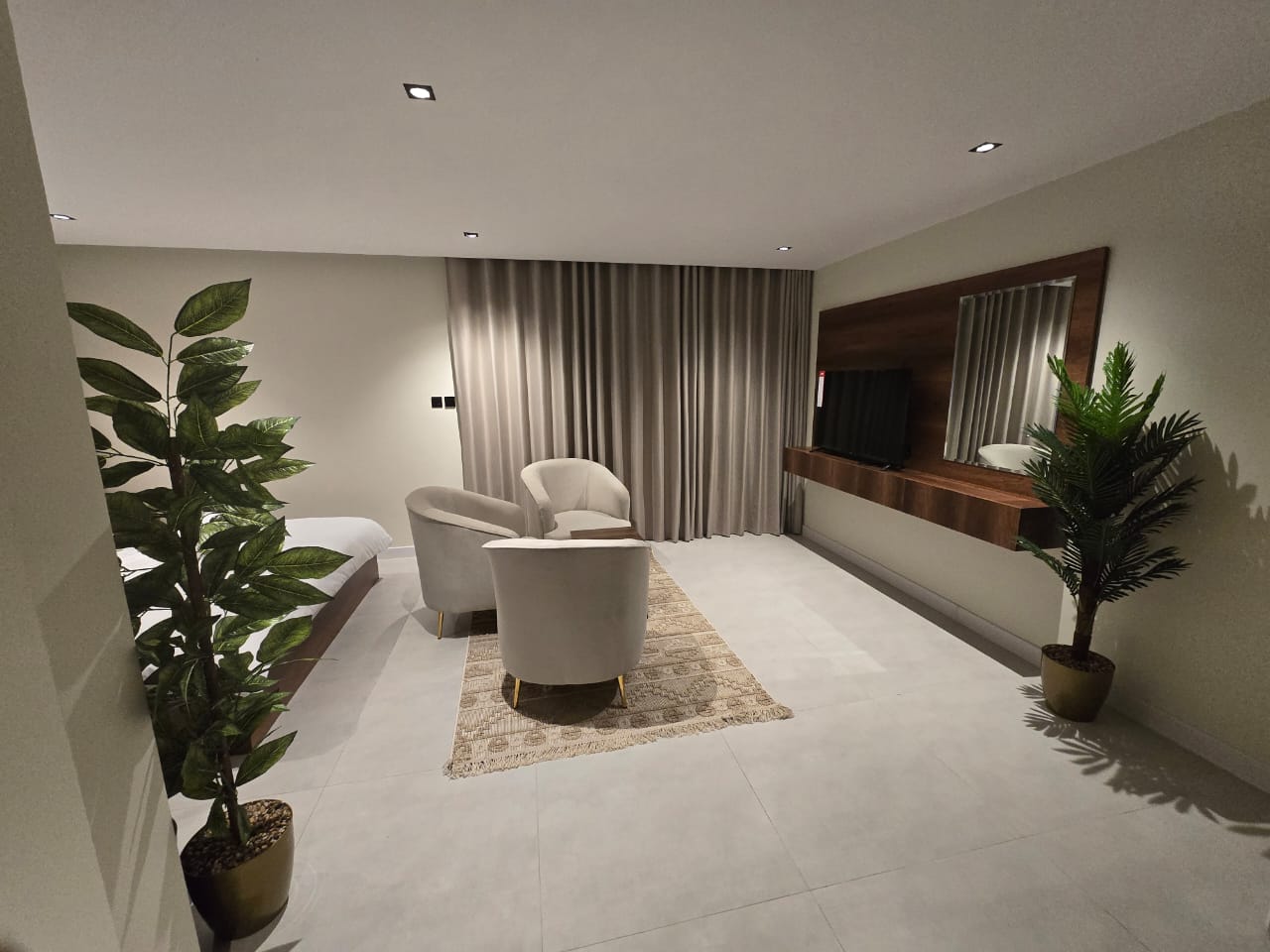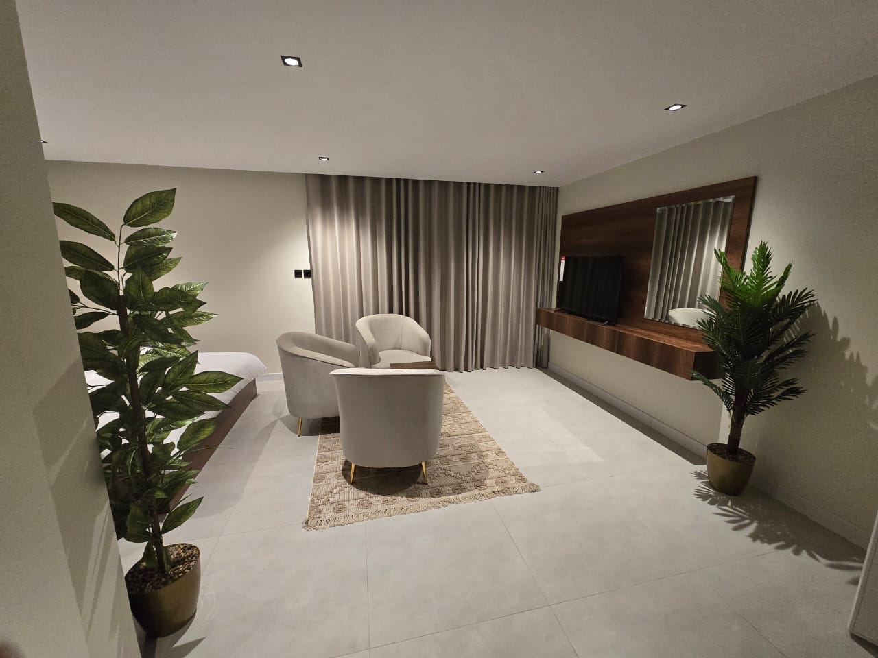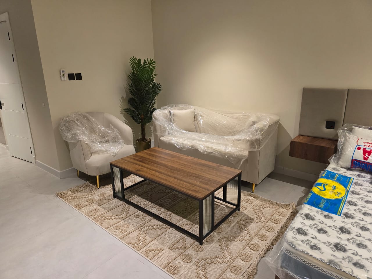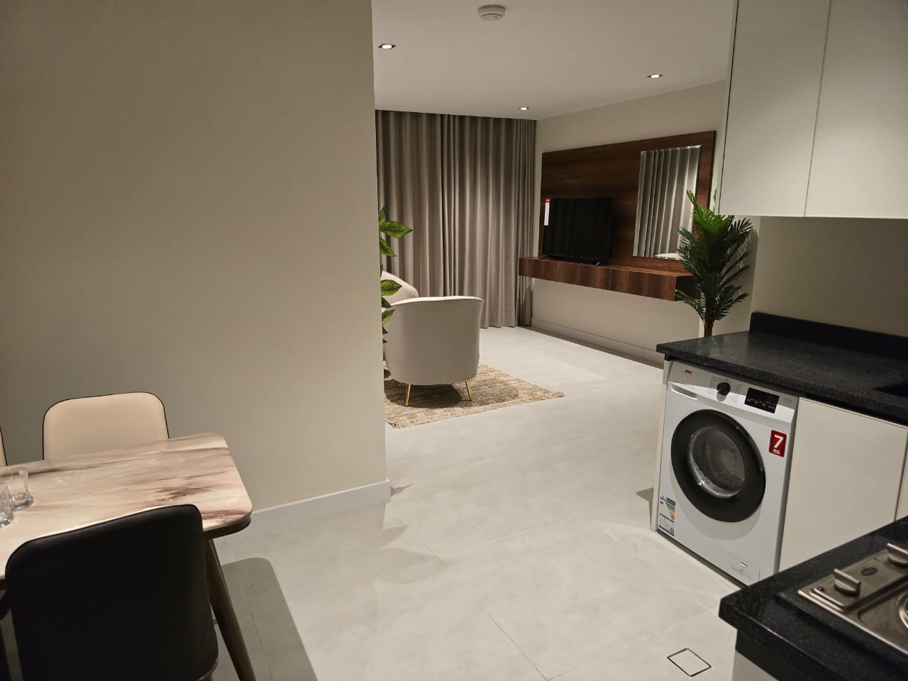🔸مميزات الغرف :مؤثثه بالكامل بها ( غساله + مطبخ راكب + ثلاجه +شاشه اسمارت + مكيفات اسبيلت )