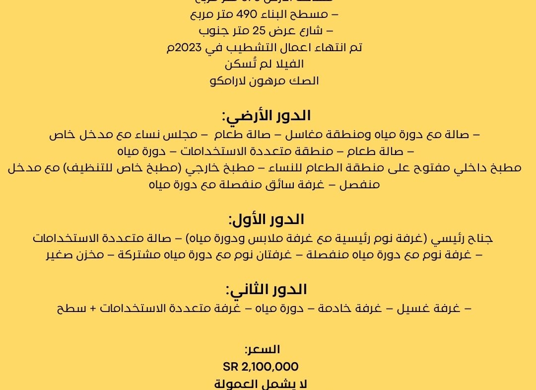 السعر المذكور غير شامل ضريبة التصرفات العقارية.