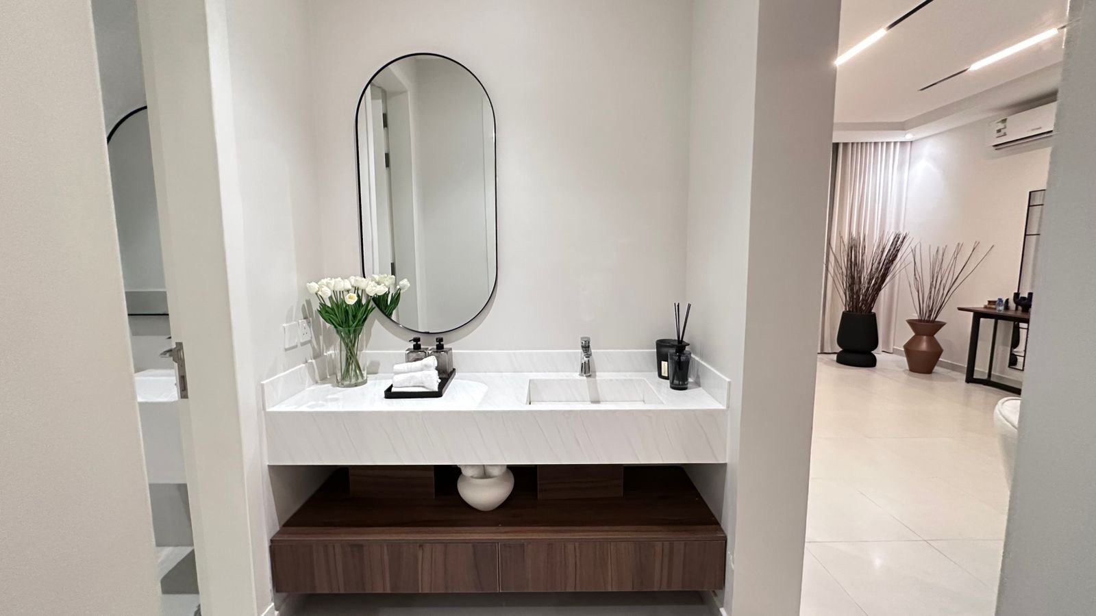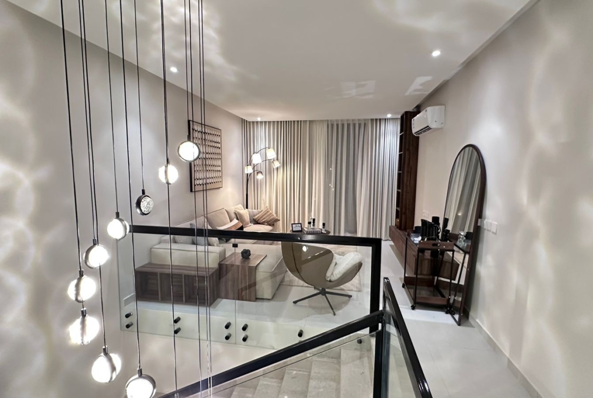 صالة غرفة مع دورة مياه بلكونة وسطح