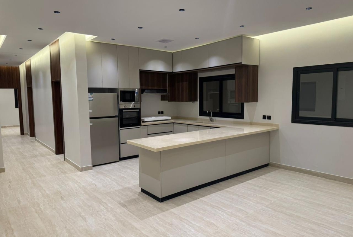(مجلس بدورة مياه بالمغاسل – بلكونة – صالة – مطبخ مفتوح على الصاله – غرفة ماستر بحمام مع مساحة للدواليب – غرفتين بينها دورة مياه – غرفة خادمه
