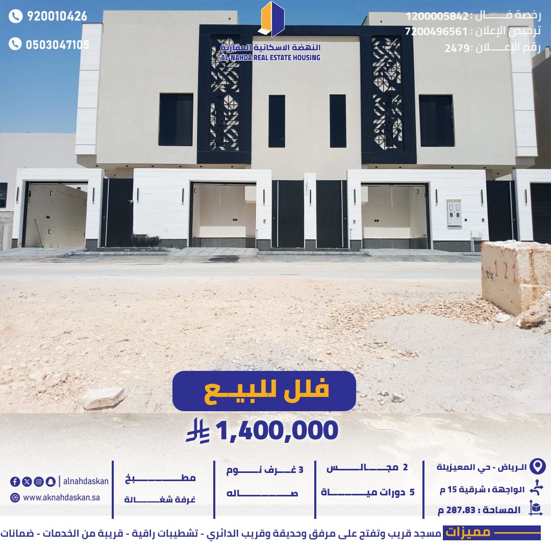 فلل تاون هاوس ارضي للبيع الرياض حي المعيزيلة