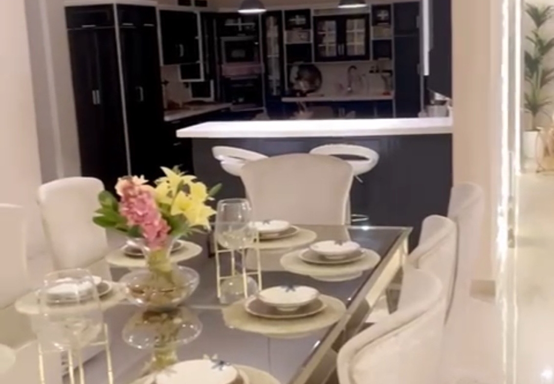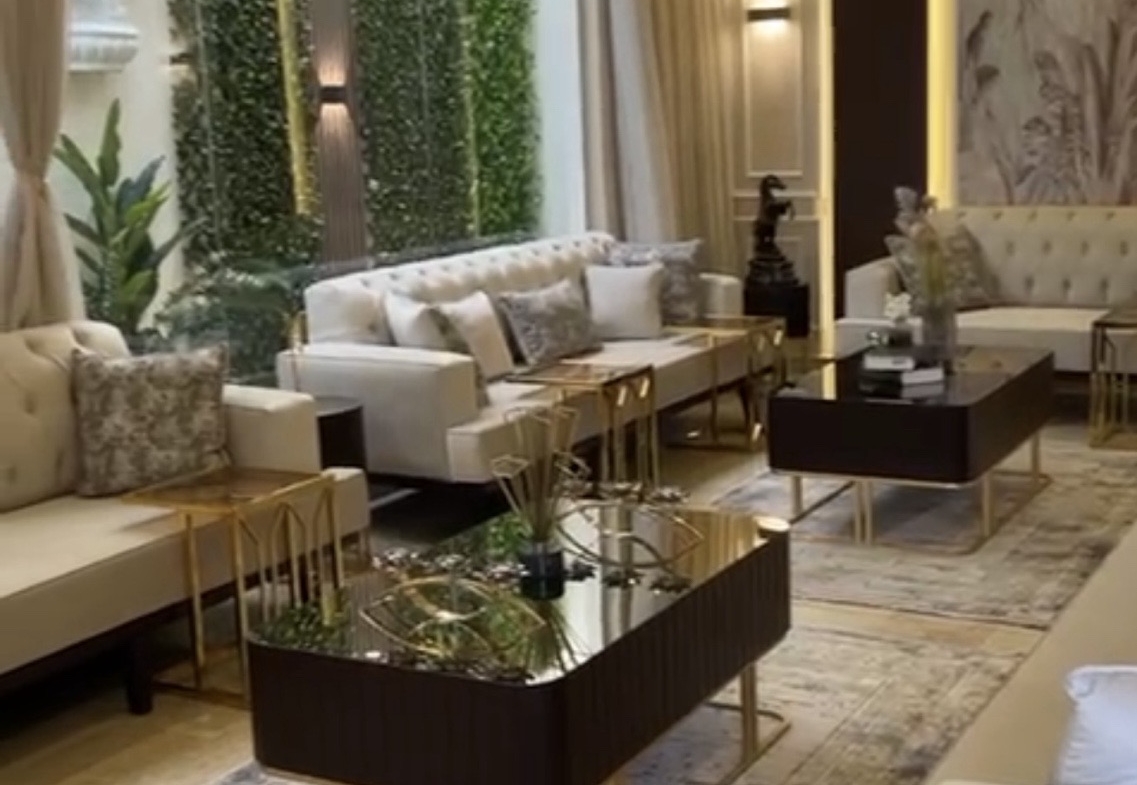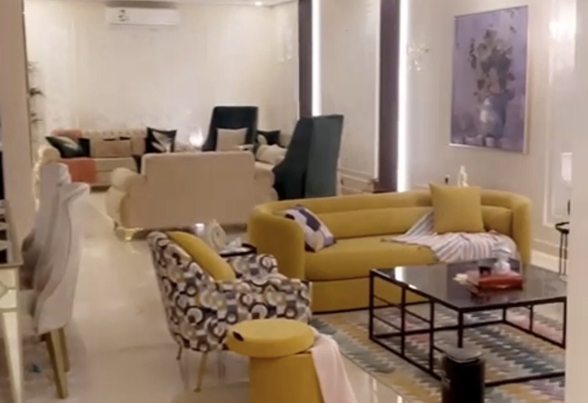 -والملحق مجلس كبير مفتوح ع بعض مع حمام كبير ؛ ومسبح ع السطح؛