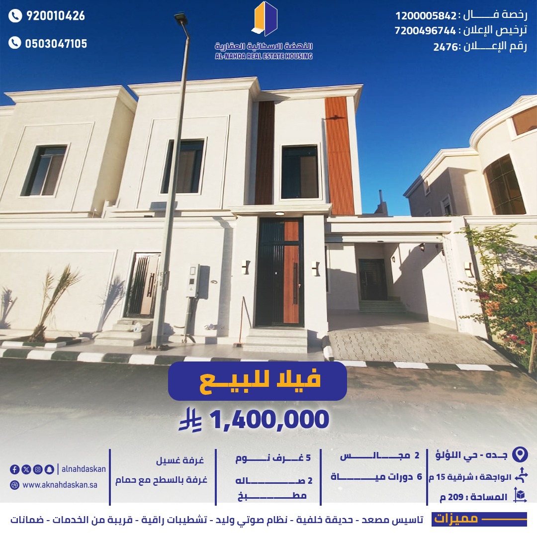 فلل للبيع جدة حي اللؤلؤ