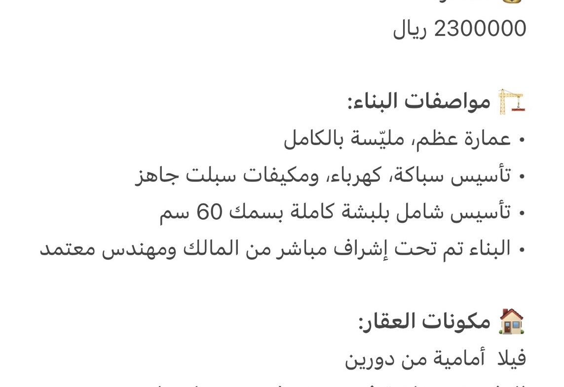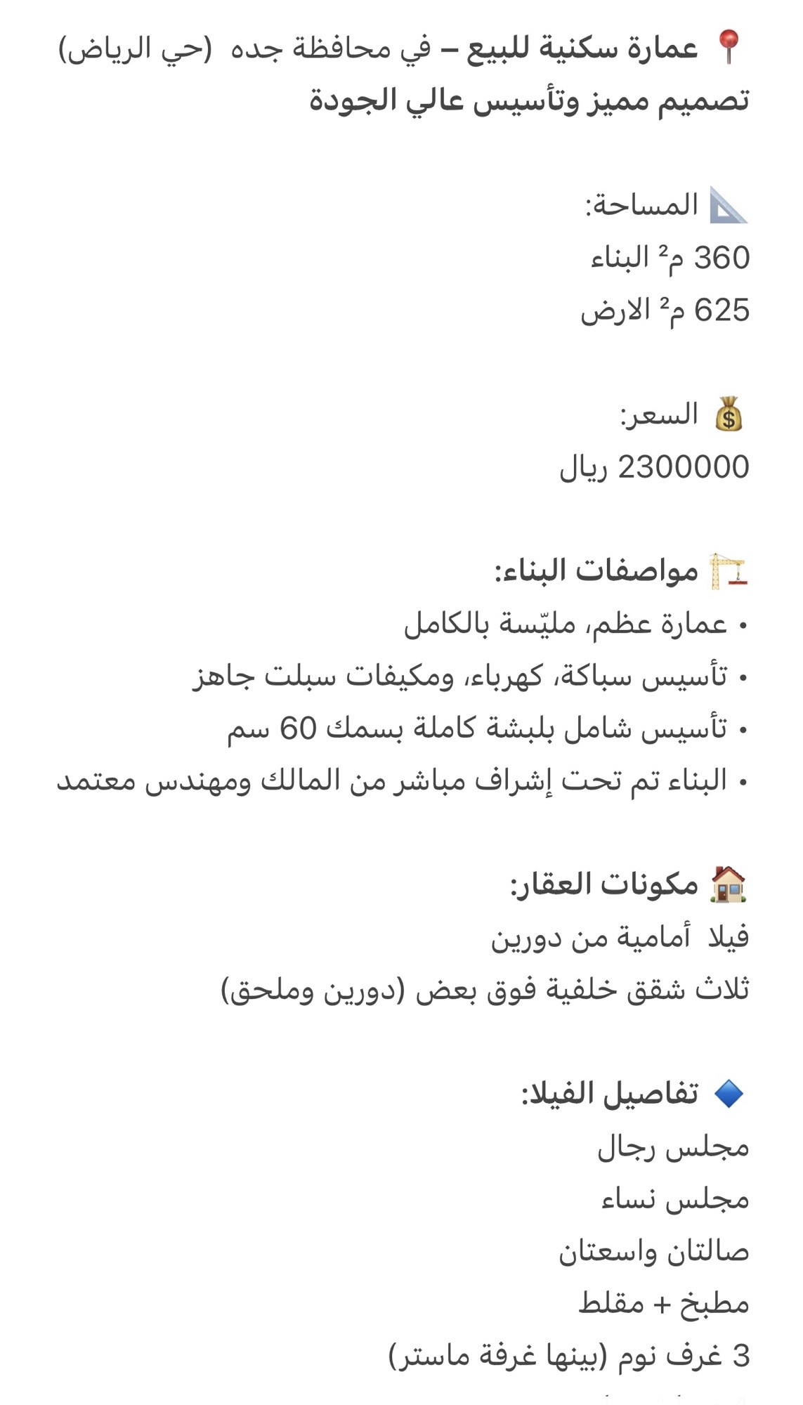 • البناء تم تحت إشراف مباشر من المالك ومهندس معتمد