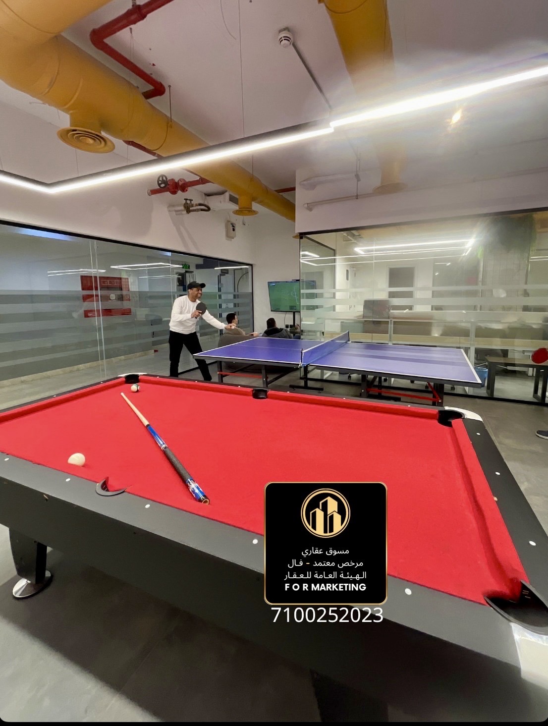بالإضافه إنترنت فايبر سريع 🛜 طابعات مشتركة 🖨️ عمال نظافة ✨ مستودعات متنوعة 🏭 مواقف سيارات 🚙 جيم رياضي 🏋️ كوفي فاخر ☕️ موظف استقبال 🙋🏻♂️ قاعات اجتماعات 🎤 صالة بريك 🛋️ كهرباء ومياه مشمولة💧 الترفية بلياردو 🎱
