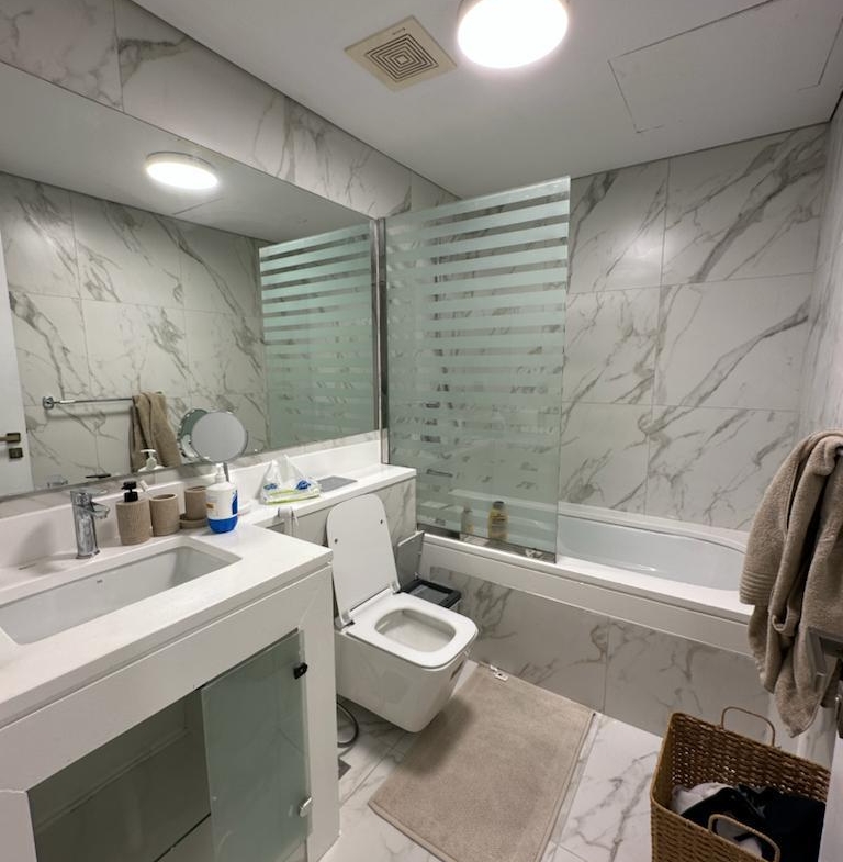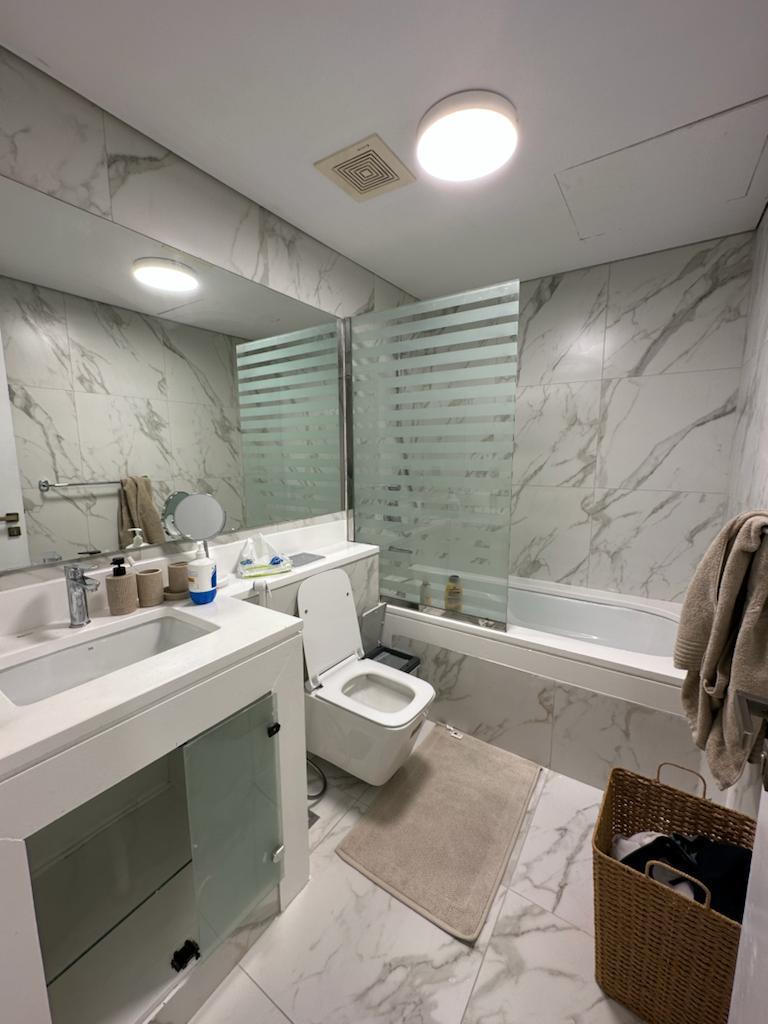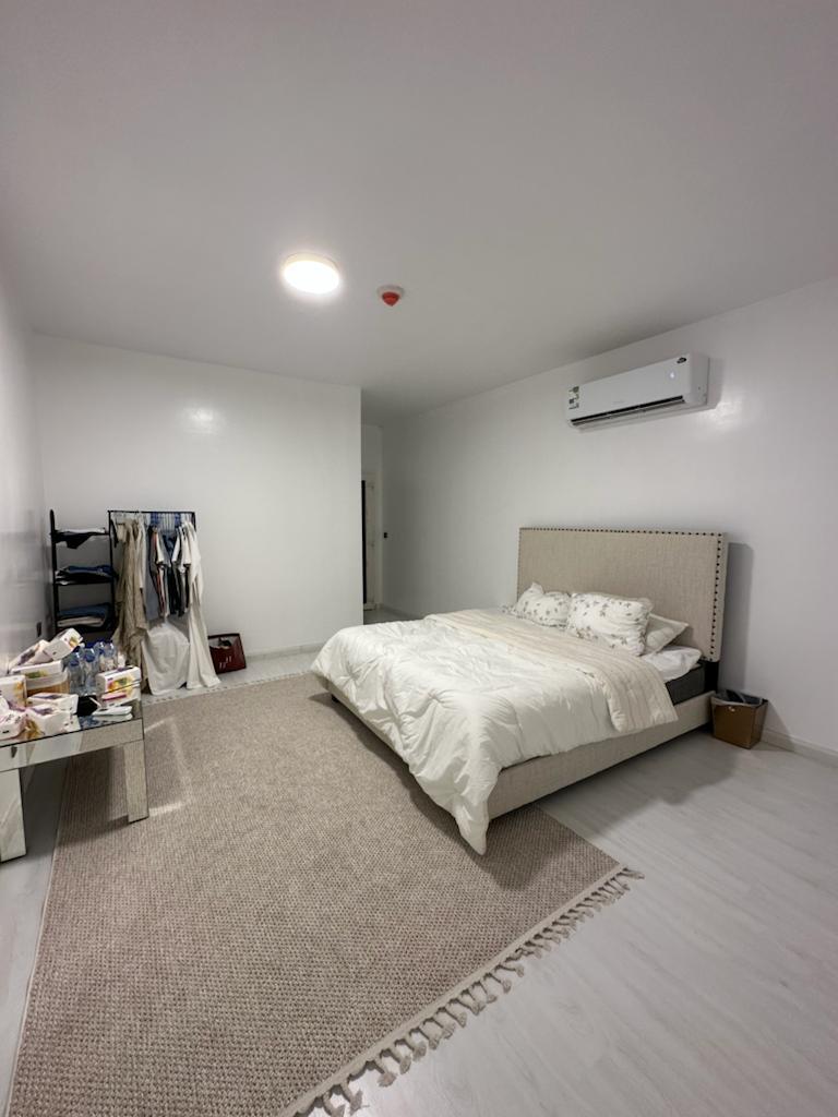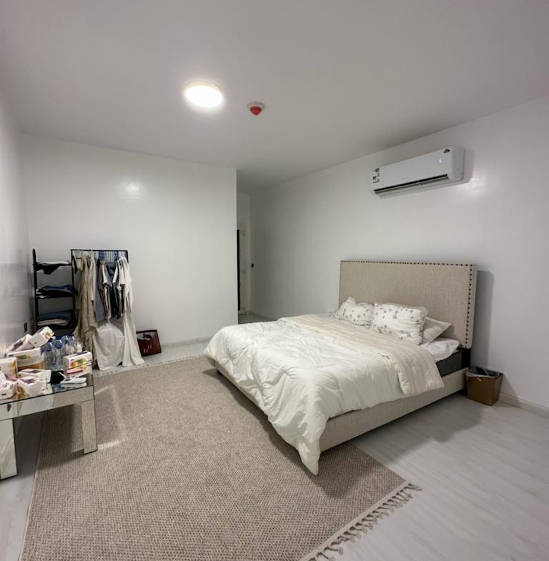 الدور الأول ( نفس دور المسبح والجيم ) الشقة : الغرف 3 + صالة كبيرة + مطبخ + 2 دورتين مياه + غرفة خادمة بحمام + غرفة غسيل + بلكونة بمساحة كبيرة